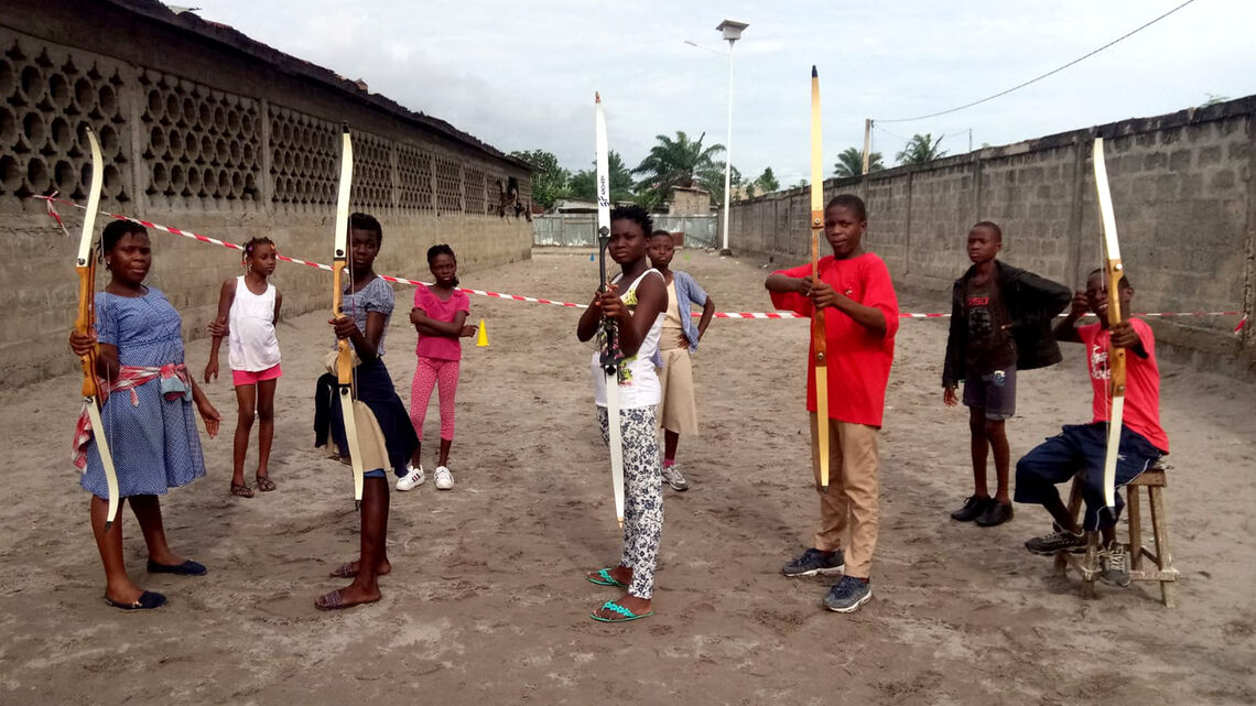 Une diplômée en langue des signes française enseigne le tir à l’arc dans une école pour enfants sourds au Bénin