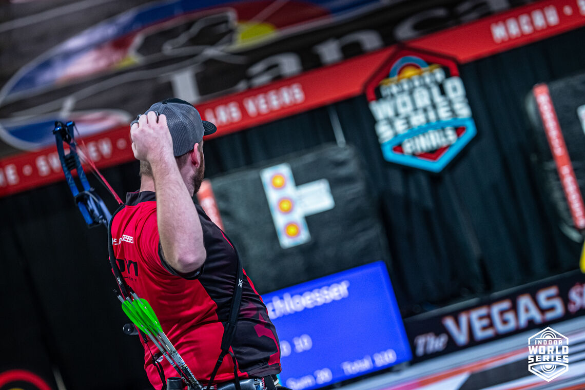 Ellison, who has not dropped a point through two days of the Vegas Shoot, did not look comfortable. His arrows landed uncharacteristically wide of the middle.