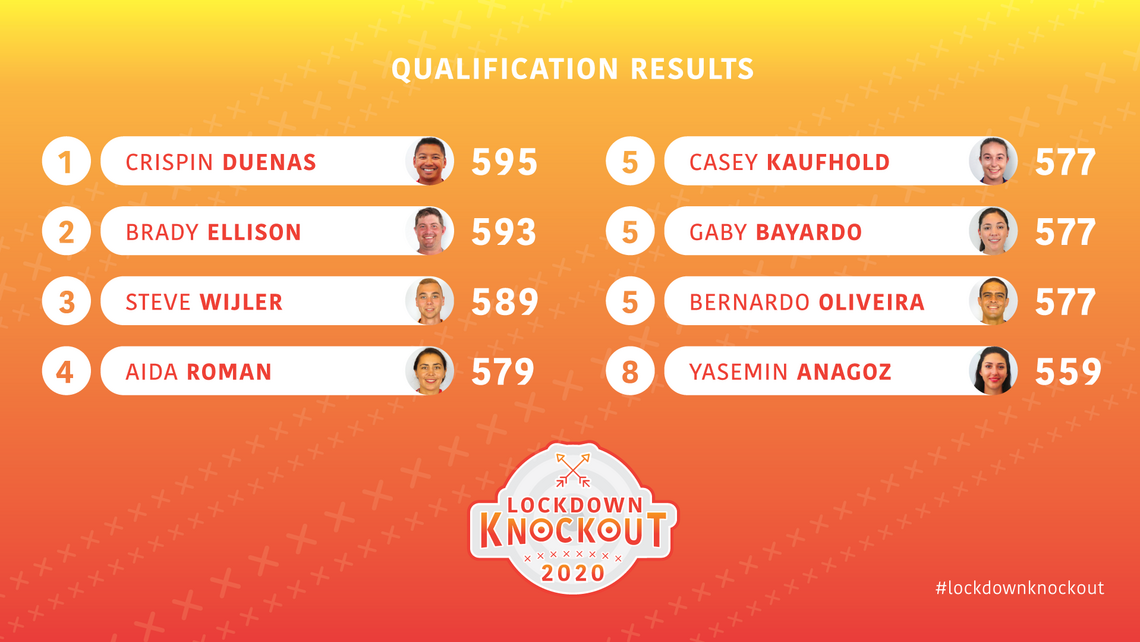 Crispin Duenas a terminé en tête des qualifications en arc classique du Lockdown Knockout, premier tournoi international de tir à l’arc à distance organisé par World Archery. L’archer canadien a réussi 595 points sur les 600 possibles dans l’épreuve de classement des 60 flèches à 18 mètres.