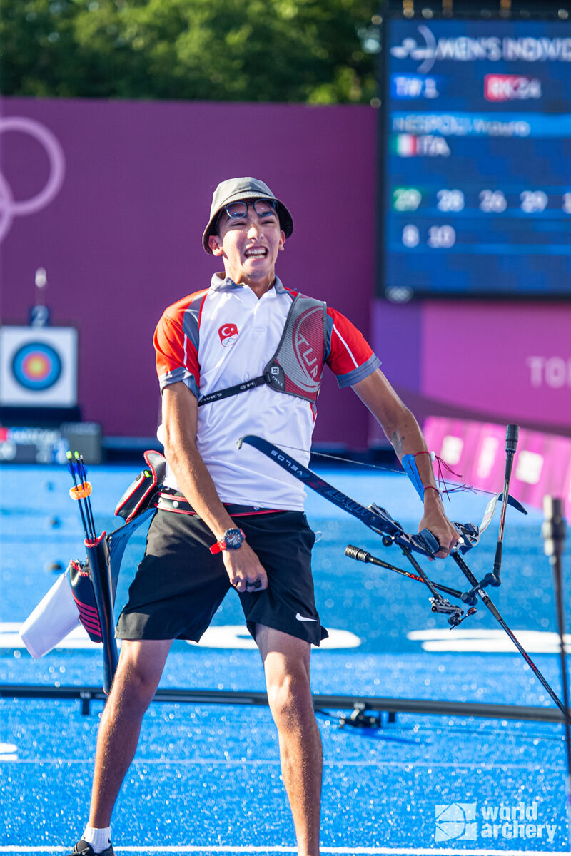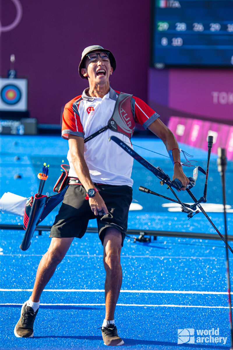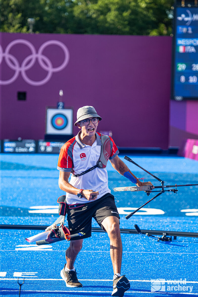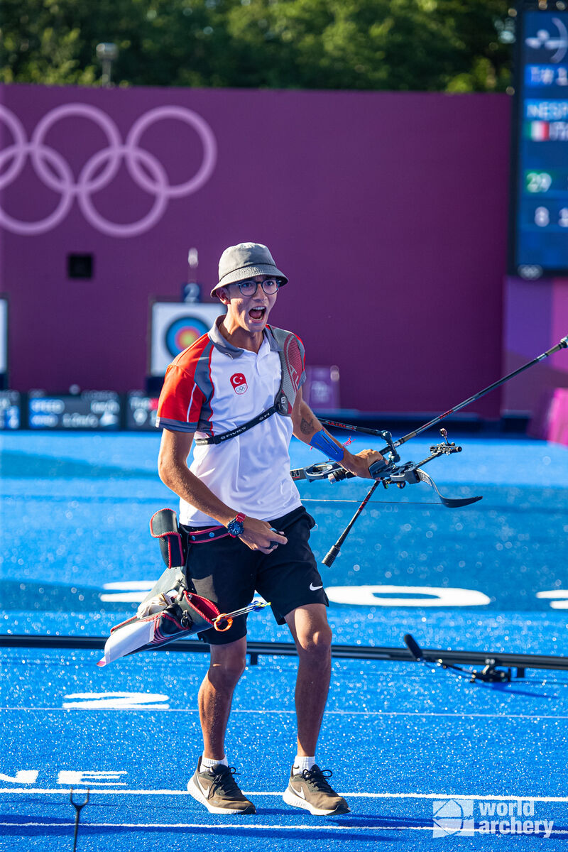 Une dernière flèche au centre donnerait la victoire à Gazoz. Et cette dernière flèche fut magnifique. Avec son style bien à lui, Mete a levé ses longs bras pour tirer une dernière flèche dans ces Jeux Olympiques.