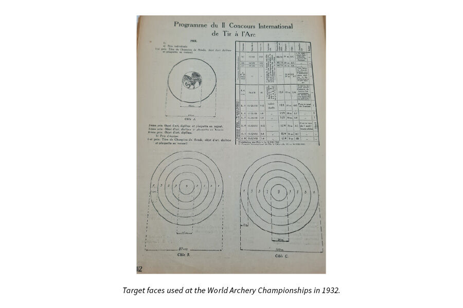 The foundation of the international federation didn’t bring about immediate standardisation but the same competition format was used for the World Archery Championships held in 1931 and 1932.