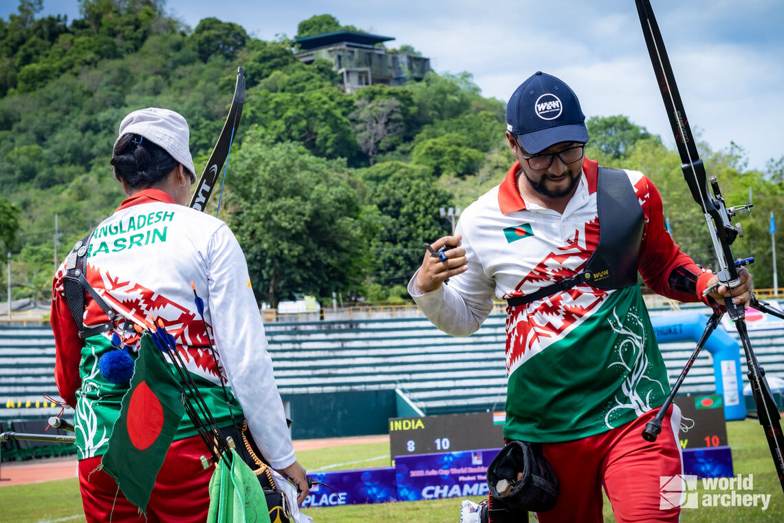 “This is a great feeling, an awesome feeling,” said Shana to World Archery about his mixed team gold. “This is my first time and it’s a great achievement for my country. Last year I played with Nasrin and she’s improving her shooting a lot and her confidence also – she won three gold medals today. I also shot with her at the 2018 Asian Games where we made the quarterfinals.”