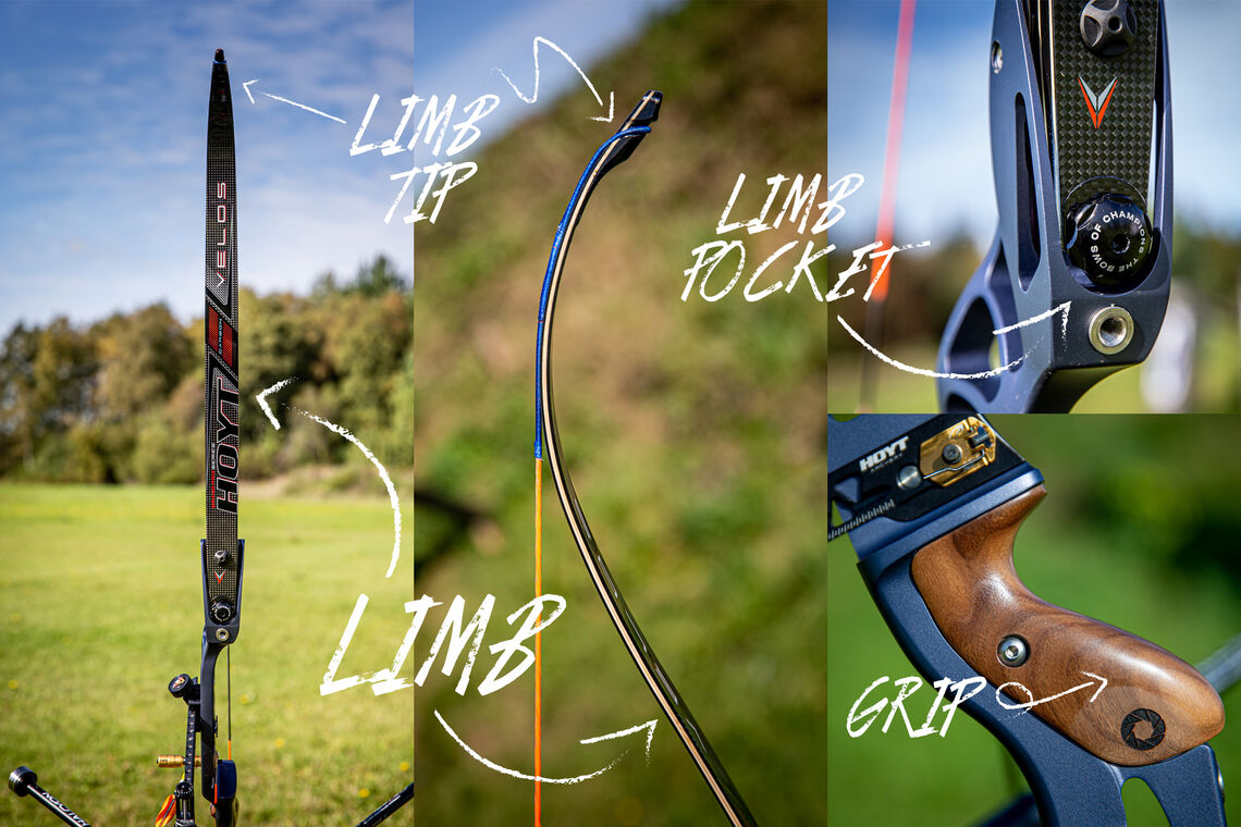 Le manche d’un arc classique est la poignée centrale qui sert de base aux branches, , qui peuvent en général se détachert pour le transport ou le stockage, sont reliée. Les branches sont maintenues sous tension par une corde d’arc qui s’accroche à l’extrémité de chacune des branches.