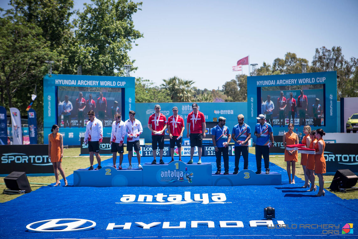 Denmark beat Turkey in the compound men’s team final at the third stage of the 2019 Hyundai Archery World Cup in Antalya, 232 points to 230.