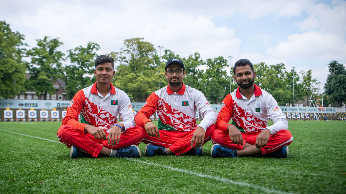 Shana, the older and most experienced archer on the team, sits in the captain position; Islam and Rubel, making their debuts at the worlds, follow his lead.