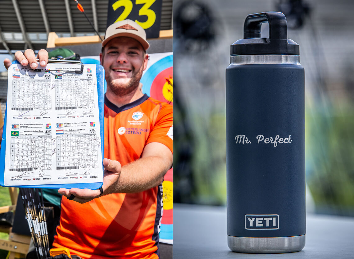 During the first half of qualification, Mike Schloesser proved himself worthy of not only his nickname, Mister Perfect, but also of his personalised water bottle. He shot a perfect 360 out of 360.