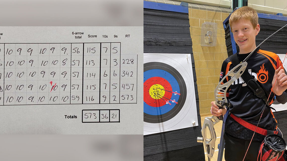 Ollie Hicks, who’s just 16 years old, has broken the barebow men’s world record for the 60-arrow 25-metre round, subject to ratification, after shooting 573 out of a possible 600 points.