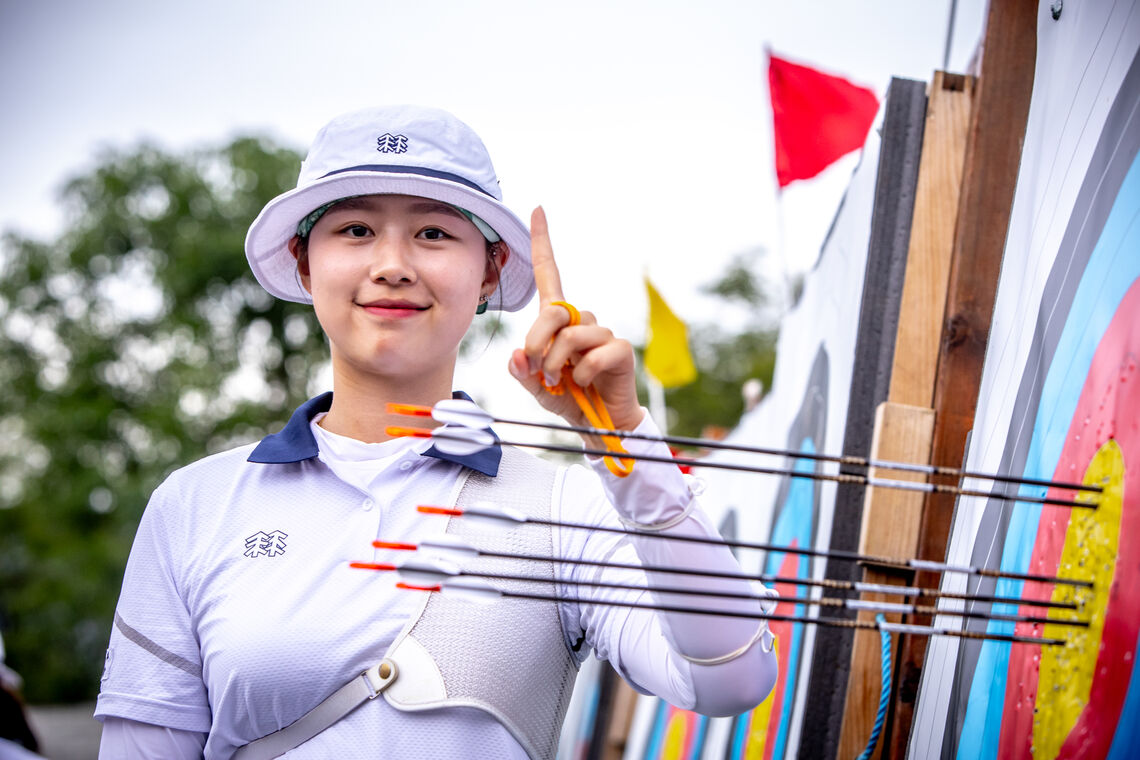 At 15 years old, having just won her first career stage of the Hyundai Archery World Cup, she calmly looks back at coach Kisik Lee for confirmation.