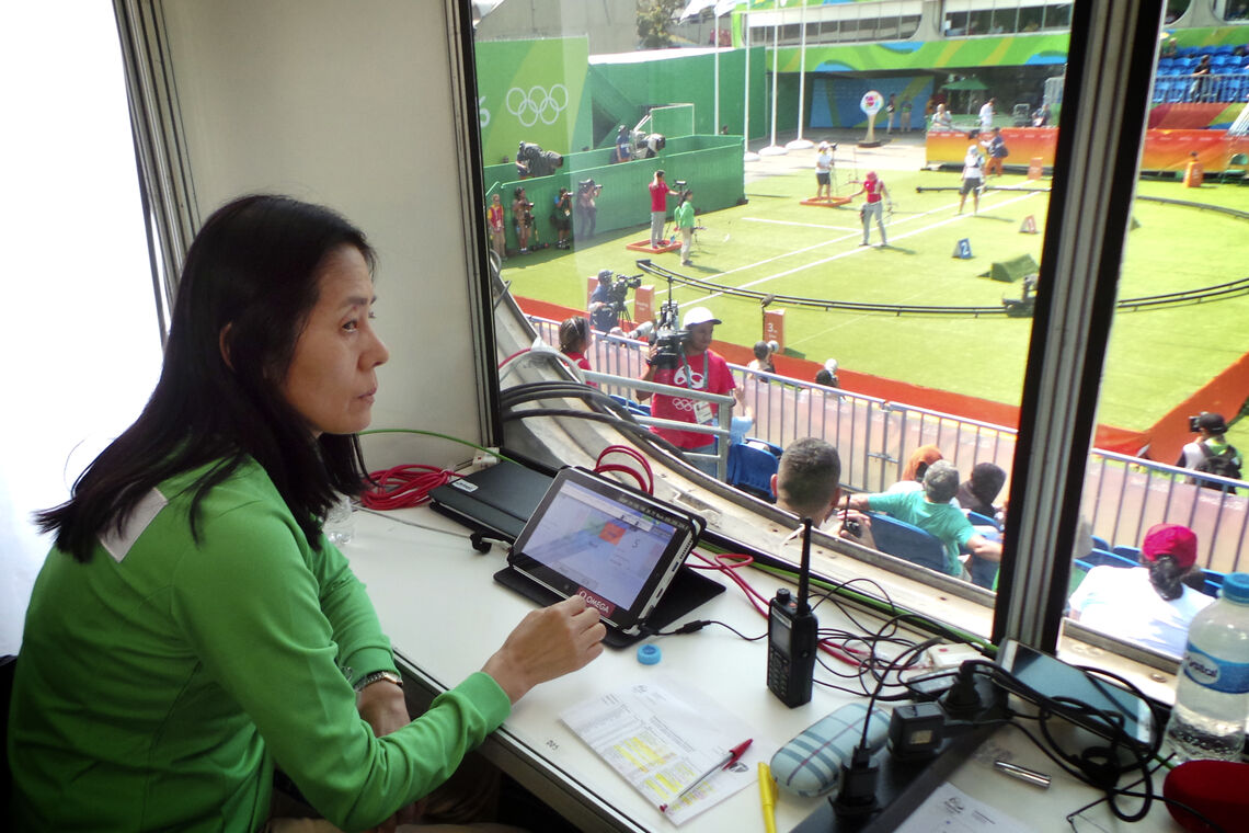Xiuzhi Zhang est la directrice des tirs aux Jeux Olympiques de Rio. Elle se trouve dans la même salle que l’équipe de la régie événementielle dans la mesure où ils doivent rester en contact permanent durant les matchs pour s’assurer que tout se déroule en temps et en ordre.