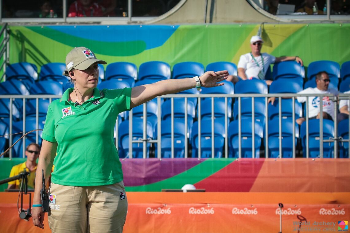 Katerina Plakouda, originaire de Grèce, est l’une des arbitres à Rio. Jusque-là, elle a été assignée juge de ligne et juge de cible, et elle a officié lors de la finale pour la médaille d’or de l’épreuve masculine par équipe.