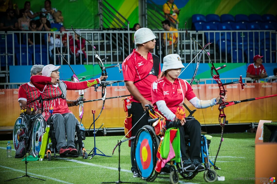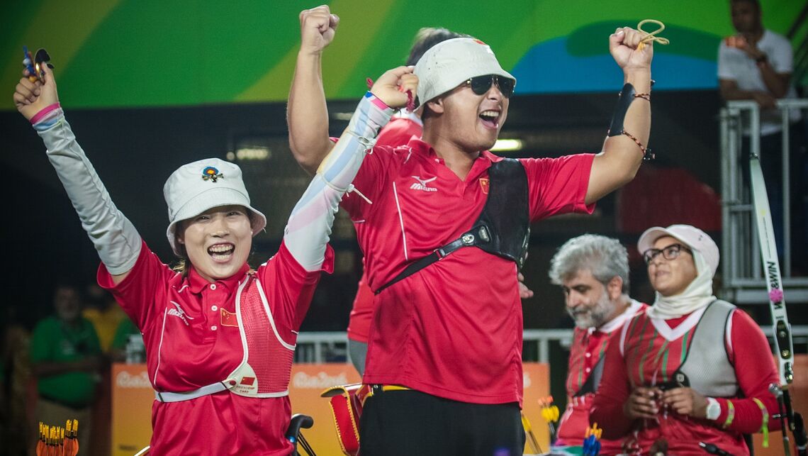 Parcours quasi parfait pour la paire chinoise en arc classique open, puisque Wu Chunyan et Zhao Lixue ont remporté la toute première médaille d'or en double mixte de l'histoire du tir à l'arc aux Jeux Paralympiques.