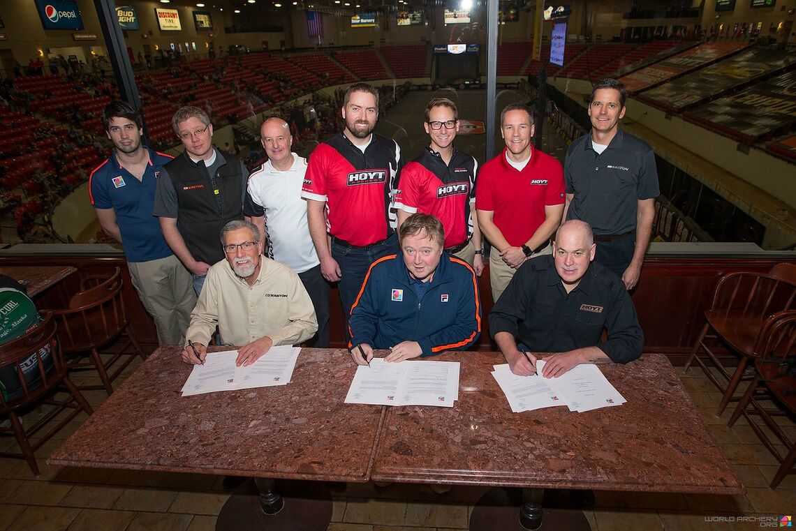 Le contrat a été signé lors du Vegas Shoot 2017 par le secrétaire général de World Archery, Tom Dielen, le président de Easton Archery, Mark Pezzoni, et le président de Hoyt Archery, Randy Walk.