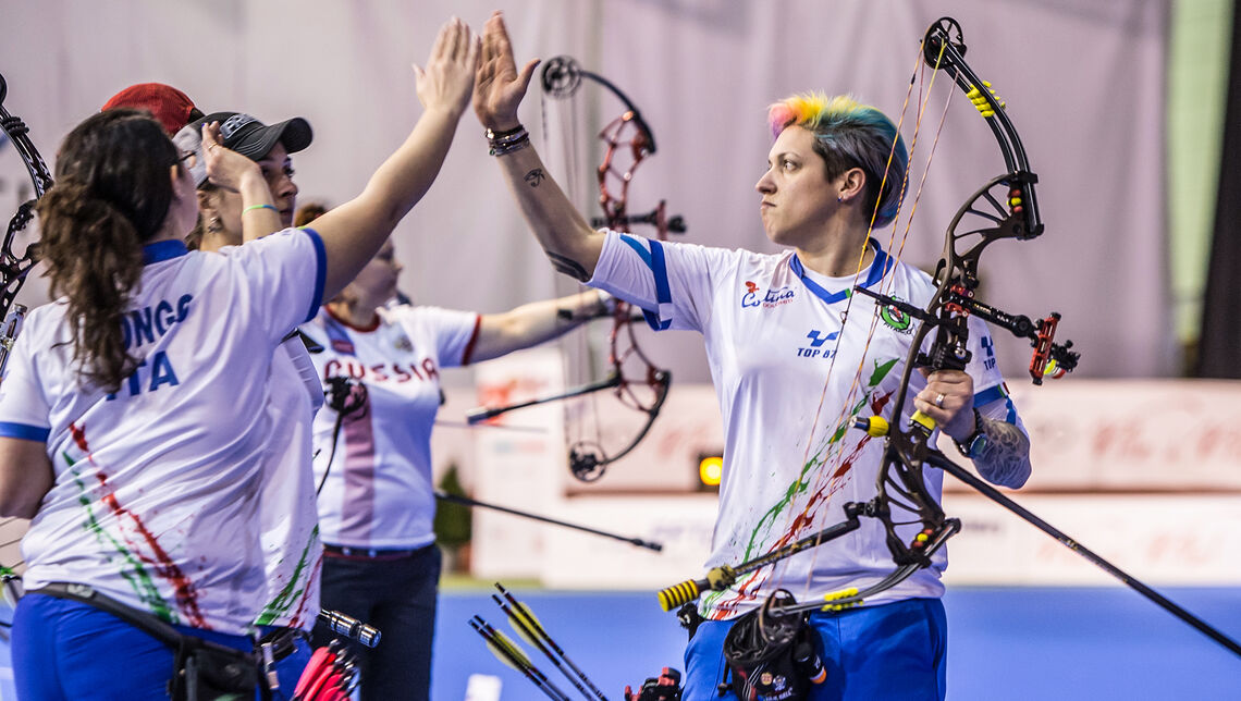 Marcella Tonioli, Irene Franchini et Laura Longo ont marqué 237 points sur les 240 possibles lors de leur demi-finale contre la Grande-Bretagne aux championnats d'Europe 2017 en salle, établissant ainsi un nouveau record du monde pour le match par équipe en arc à poulies féminin, sous réserve de ratification.
