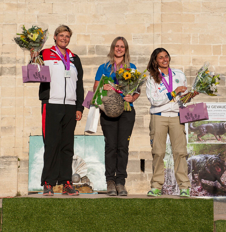 Kristina Heigenhauser, championne du monde de tir à l'arc 2013 dans la compétition féminine d'arc à poulies, qui était en compétition dans l'épreuve d'arc nu (barebow) à Robion, est repartie avec la médaille d'argent. Tête de série No 2, l'Allemande a battu l'archère russe Maria Savenkova en demi-finale, mais n'a rien pu faire dans sa finale contre Lindblom.
