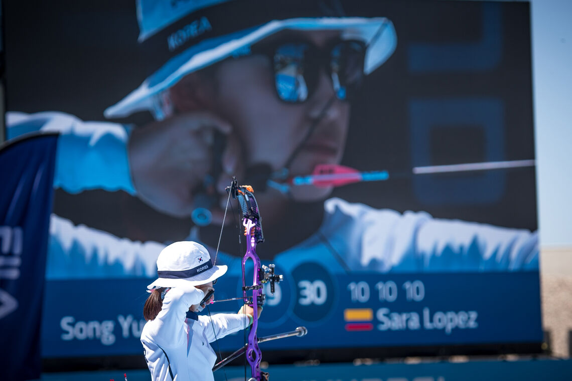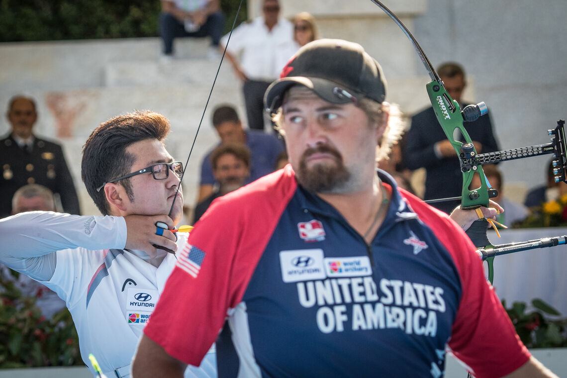 La Finale de la Coupe du Monde Hyundai de tir à l’arc à Rome, et deux poids lourds face-à-face pour le titre. Woojin est à pleine allonge, calme, tandis que Brady regarde vers son entraîneur, désorienté.