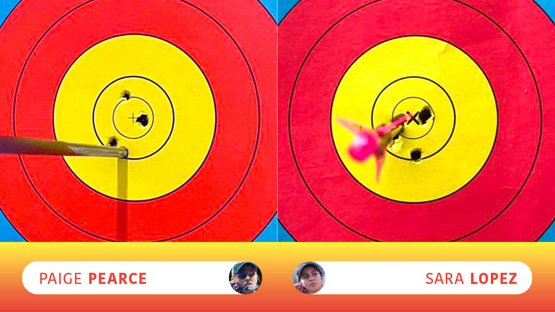 “Celle de Sara est plus proche,” a déclaré Pearce alors que les deux femmes se rendaient aux ciblex pour contrôler leurs flèches. “Honnêtement, [le tir] m’a vraiment semblé bon, j’étais contente quand il est parti de mon arc, alors c’est comme ça.”
