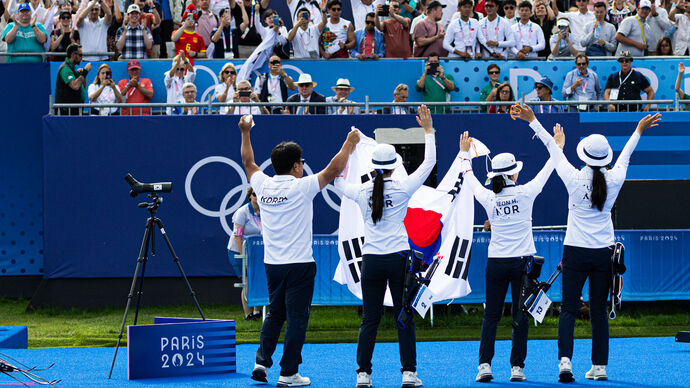L’entraîneur coréen Yang Changhoon a semblé célébrer la victoire à plusieurs reprises, mais le stade des Invalides n’a finalement pu éclater que lorsque le doigt de l’arbitre de cible a indiqué qu’une flèche avait touché la ligne. C’était celle de Lim.