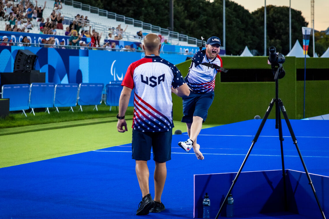 Malgré un score de 148 sur 150, le Chinois Ai Xinliang devait s’incliner devant les 149 points de Stutzman, nouveau recordman paralympique, qui terminait sa finale par un dix.