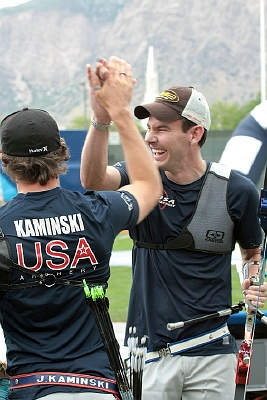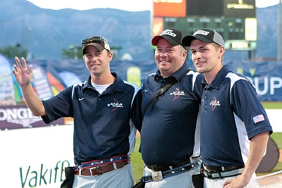 La troisième volée a commencé sous un vent violent. Les Chinois ont fait plus d’erreurs que les Américains (9-8-8-9-8-9 à 9-9-9-9-8-10). Les USA avaient une avance confortable, 167-160. Les deux équipes ont tiré 29 points avant les trois dernières flèches. Les derniers tirs des Chinois (9-7-x10) n’avaient pas de quoi inquiéter les Américains, qui ont conclu sur 9-10-x10, leur onzième 10 du match! Brady ELLISON, Jake KAMINSKI et Victor WUNDERLE ont gagné la médaille d’or pour la plus grande joie des spectateurs.