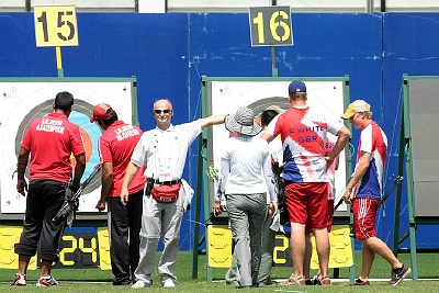 Les Pays-Bas ont enchaîné avec une victoire en quarts de finale devant le pays classé No. 1 la Russie (Alexander DAMBAEV/Albina LOGINOVA). Les Néerlandais ont mené de bout en bout et remporté la partie 153-148. Dans un match très important pour le classement de la Coupe du Monde du double mixte, les Mexicains Hafid JAIME/Linda OCHOA étaient menés par les Sud-Africains Seppie CILLIERS/Jorina COETZEE 111-113 à quatre flèches de la fin. Le Mexique, avec 40 points, est revenu à égalité in extremis à 151-151. Barrage, une flèche par archer. Les Mexicains ont tiré 10-10, alors que les Sud-Africains ont fait 10 et 9, à un millimètre du 10! Le Mexique reste ainsi dans la course! Dans les autres quarts de finale, l’Iran a battu la Malaisie 153-150, et les USA se sont défaits de l’Inde 154-150.