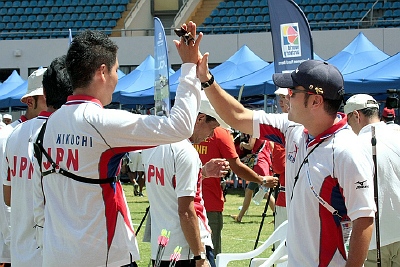En demi-finales, les USA et l’Australie ont commencé par une égalité 58-58. Les USA, gagnants par équipe à Porec et à Ogden cette année, étaient pressentis pour la victoire, mais c’est l’Australie qui leur a ravi la place en finale par 230 points contre 226! L’autre demi-finale a opposé l’Iran à la Grande-Bretagne. L’Iran a été mené d’entrée (56-58) mais a réussi à égaliser à 224-224 à la fin du match. Les archers britanniques ont réussi le barrage parfait (10-10-10!) alors que l’Iran a eu une flèche en dehors du 10 (29). La médaille d’or se jouera entre l’Australie et la Grande-Bretagne, alors que l’Iran et les USA en débattront pour le bronze.