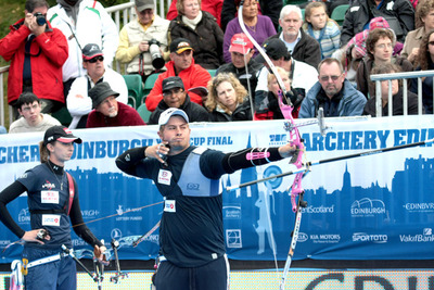 Les matches en double mixte à Edimbourg suivaient le système de score traditionnel avec quatre volée de quatre flèches, donc 16 flèches par équipe au total.