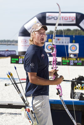 Le champion en titre de la Finale de Coupe du Monde Brady ELLISON a entamé la saison de Coupe du Monde 2011 comme il avait terminé la précédente. Lors de la première étape à Porec, en Croatie, la semaine dernière, il a gagné deux médailles d’or chez les hommes en individuel et par équipe ainsi qu’une médaille d’argent en double mixte. Ces performances fantastiques lui ont valu d’être choisi par World Archery comme Athlète de la semaine.