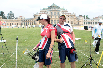 Dans leur demi-finale contre les Coréens CHOI/SEOK, les Italiens PAGNI/TONIOLI ont pris un point d'avance après la première volée (39-38) et gardèrent leur court avantage après la seconde (76-75) et la troisième volée (114-113). Même si la paire coréenne a essayé de revenir lors de leur quatre dernières flèches (10-X10-9-X10), ils n'ont pu que constater la volée parfaite de leurs adversaires (X10-10-10-10). Score final : 154-152! Le pays hôte tirera en finale samedi pour l'or! Son challenger pour le premier titre de champion du monde en Poulies Double Mixte de l'histoire, sera la paire néerlandaise ELZINGA/VAN CASPEL, qui a battu le double iranien composé de KAZEMPOOR/MAHTAB sur le score 155-151.