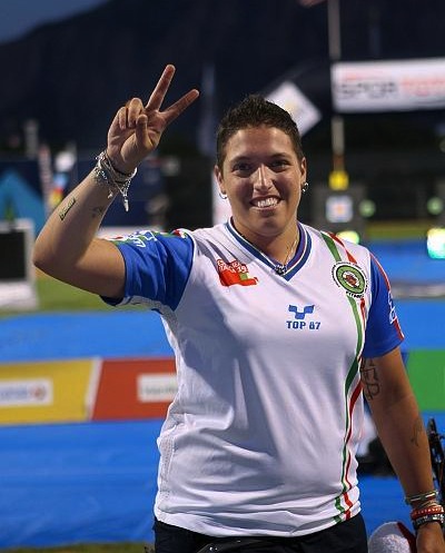 Marcella TONIOLI a découvert le tir à l’arc il y a huit ans à l’école secondaire grâce à son professeur d’éducation physique. “Ça m’a plu et je suis allée voir une compétition de tir à l’arc. C’est là que j’ai réalisé que ça pouvait devenir mon sport. J’ai toujours apprécié les sports peu courants.” Marcella a commencé par tirer avec un arc classique, et a fait le changement après cinq ans quand des camarades de club lui ont proposé de tirer dans leur équipe d’arc à poulies. “Maintenant je préfère l’arc à poulies. Quand je l’ai essayé, ça a été comme un nouveau départ dans ma carrière d’archère” a-t-elle expliqué.Lors de sa première compétition internationale, les Championnats d’Europe en Salle 2011 à Cambrils (Espagne), l’Italienne de 25 ans a gagné la médaille d’or individuelle en éliminant rien moins que la championne du monde Albina LOGINOVA (RUS) en finale!
