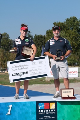 A Istanbul, M. Juan Carlos CAPELLI et Mme Louise MORO ont représenté Longines lors de la remise du Prix. Directeur Marketing de Longines, M. CAPELLI a déclaré: "Longines est heureux de soutenir le tir à l’arc parce que c’est un sport avec lequel nous partageons les mêmes valeurs de tradition, de performance et de précision. Les Prix Longines ont en fait commencé il y a une dizaine d’années. Nous avons débuté avec la gymnastique, puis l’hippisme. Ces deux dernières années nous avons ajouté le tennis et le tir à l’arc. Aujourd’hui, nous sommes très contents de récompenser deux superbes athlètes. Ils ont montré de grandes performances tout au long de la saison et ils méritent absolument le Prix Longines de la Précision 2011!”