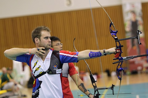 Le champion du monde de tir en campagne 2012 Jean-Charles VALLADONT (FRA) a participé à sa deuxième finale d’importance cette année. Il a affronté le héros local Silie TAN pour la médaille d’or. VALLADONT a ouvert par un set parfait (30) contre 29 points à TAN pour mener 2-0. Soutenu par le public singapourien, TAN a tiré à son tour 30 points au set suivant (2-2). Au troisième set, les deux hommes ont tiré 29 points, égalité à 3-3. Le Français s’est imposé aux deux sets suivants pour une victoire 7-3.