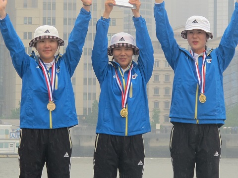 Chez les femmes, la Corée (no 2) a défié les Etats-Unis en finale. L’équipe américaine était composée des anciennes gagnantes de la Finale de Coupe du Monde Erika JONES et Jamie VAN NATTA et de la nouvelle-venue Carli COCHRAN. Les Coréennes CHOI Bomin, SEOK Ji Hyun et YOUN So Jung, moins titrées, avaient cependant posté le meilleur score enregistré cette semaine à Shanghai (234 points). Et elles n’ont fait qu’une bouchée des Américaines : à la première volée, trois 8 de ces dernières ont permis aux Coréennes de prendre une avance peu commune de sept points (59-52). Après une deuxième volée à 52 des Américaines, la Corée a augmenté l’écart à treize points (117-104). Elle s’est finalement imposée 231-216. Enchantées de cette première médaille d’arc à poulies en Coupe du Monde, les Coréennes ont déclaré que “c’est un grand plaisir pour nous et cela nous donne une grande confiance en vue de gagner d’autres médailles à l’avenir”.