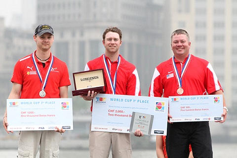 Un peu plus tard, la finale individuelle masculine s’est jouée entre les deux hommes ayant tiré le plus de 10 tout au long de la semaine : Martin DAMSBO (DEN/1), tombeur du no 1 mondial WILDE en demi-finale, Braden GELLENTHIEN (USA/3), vainqueur de la Finale de Coupe du Monde 2012. Il s’agissait par ailleurs de la revanche de la finale d’Antalya 2010, remportée par le Danois. Aujourd’hui, dans ce qui était plus un combat psychologique qu’un combat de scores, les deux hommes ont commencé par 10-10-10-10-10-9, lâchant certainement ce 9 sous la pression. Dans ce match très rapide, DAMSBO a perdu un point avec un 9 à la troisième volée puis deux à la suivante, tandis que GELLENTHIEN, qui tirait de façon très relâchée, enchaînait les 10. L’Américain s’est finalement imposé 148-145 pour son troisième titre du jour! “J’avais déjà gagné trois médailles d’or aux Championnats du Monde Universitaires, mais c’est la première fois que j’y arrive lors d’un événement World Archery”, a commenté le champion.