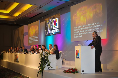Le Président de WA, le Prof. Dr U?ur ERDENER, a ouvert le 50e Congrès de World Archery avec 98 Associations membres représentées.