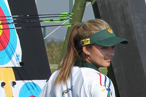 Deux jeunes archères inattendues ont fait sensation. La Sud-Africaine de 18 ans Danelle WENTZEL (photo), gagnante de la Coupe du Monde en salle de Singapour, a battu la médaillée de bronze de Medellin Ana MENDOZA (VEN), 140-139. Quant à l’Iraqienne de 15 ans Fatimah ALMASHHADANI, à égalité à 115-115 avec l’Italienne Anastasia ANASTASIO, elle a conclu sur trois 10 synonymes de qualification. Fatimah est la petite sœur de Rand Saad AL-MASHHADANI, qui a participé aux Jeux de Londres en arc classique. Les deux archères sont entraînées par leur père.