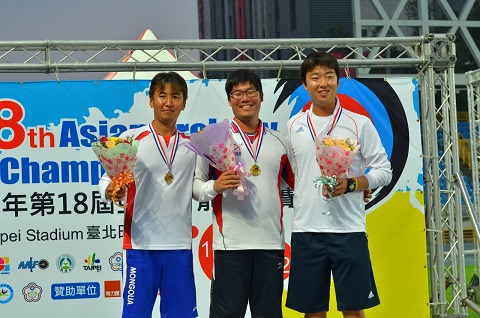 Comme chez les femmes, deux Coréens allaient se battre pour amener une histoire de famille coréenne en finale ; KU défiant le médaillé d’argent olympique FURUKAWA et JUNG tirant contre l’archer venu des steppes mongoles JANTSAN. Cependant, et de façon presque inattendue, la Corée n’aura pas de représentant en finale. FURUKAWA surclassant KU 6-0 et JUNG perdant le tir de barrage contre JANTSAN, qui n’a pas perdu sa concentration. C’est la première fois que l’archer mongol réussissait à se qualifier pour la finale d’un championnat continental. Le derby coréen pour la médaille de bronze a été remporté par JUNG après un nouveau tir de barrage. Sa flèche est allée droit dans le X. FURUKAWA (photo) a mis en œuvre toute sa puissance et sa précision en envoyant toutes ses flèches dans le 10 pour une victoire en trois sets. Il a démontré pourquoi il avait remporté la médaille d’argent olympique en 2012 ; et devient Champion d’Asie pour la première fois.
