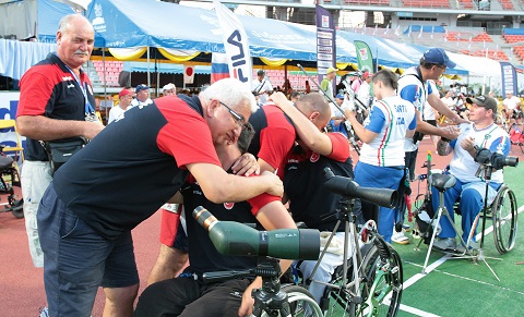 Son chemin s’est arrêté en demi-finales contre les Français, la privant ainsi de médaille d’or : Stéphane GILBERT, Armando CABREIRA et Alexandre LASVENES étaient trop forts et ont marqué le plus grand nombre de points aujourd’hui avec une victoire claire 213-203. La finale sera celle attendue puisque les champions du monde et paralympiques russes Mikhail OYUN, Oleg SHESTAKOV et Timur TUCHINOV ont vaincu la Turquie en quarts de finale, et la Corée en demi-finales avec une avance de deux points, 200-198. KIM Ji Nyun, LEE Hong Gu et LEE Hak Young lutteront pour le bronze contre l’équipe britannique.