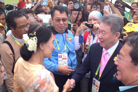 Le Prix Nobel de la Paix Aung San Suu Kyi en visite aux SEA Games