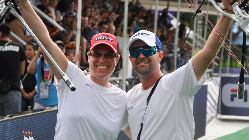 Le numéro un mondial PJ DELOCHE et Sophie DODEMONT sont restés aussi solides que possible, bien qu'accrochés durant tout le match. Ils ont tiré deux derniers 10. Ils n’avaient plus qu’à regarder SCHLOESSER préparant sa dernière flèche: il lui fallait un 10 pour forcer un tie-break.