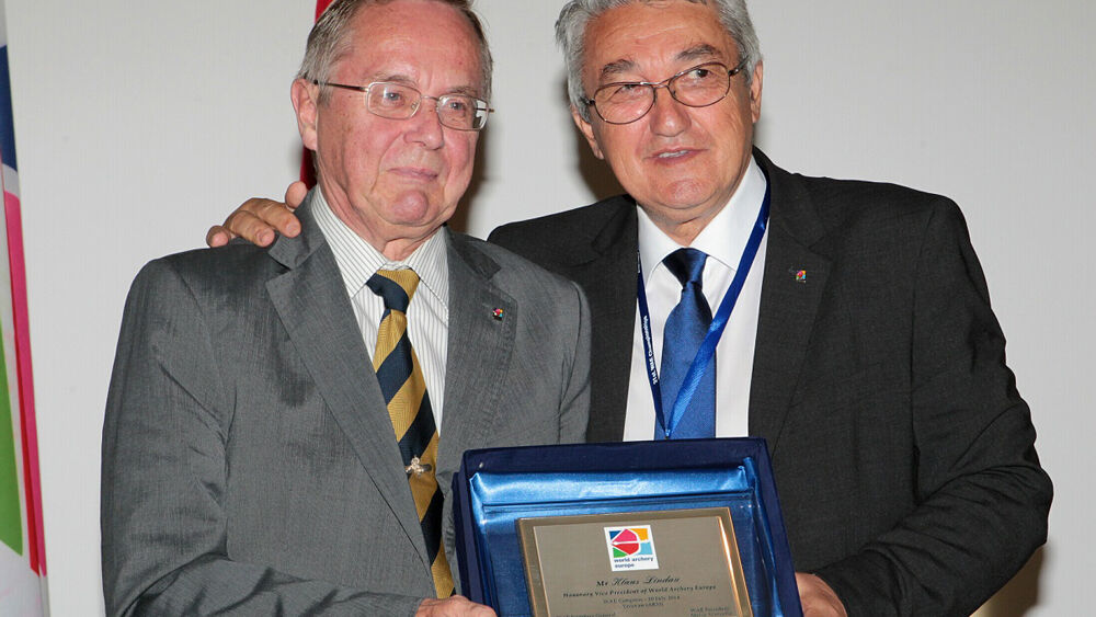 Klaus LINDAU, tout d’abord Vice-Président de l’EMAU et ensuite de World Archery Europe depuis 1996, s’est retiré de la Commission Exécutive de l’association européenne. Il a été récompensé en conséquence du titre de Vice-Président d’Honneur et a reçu une plaquette pour son travail exceptionnel en faveur du tir à l’arc durant toute sa carrière.