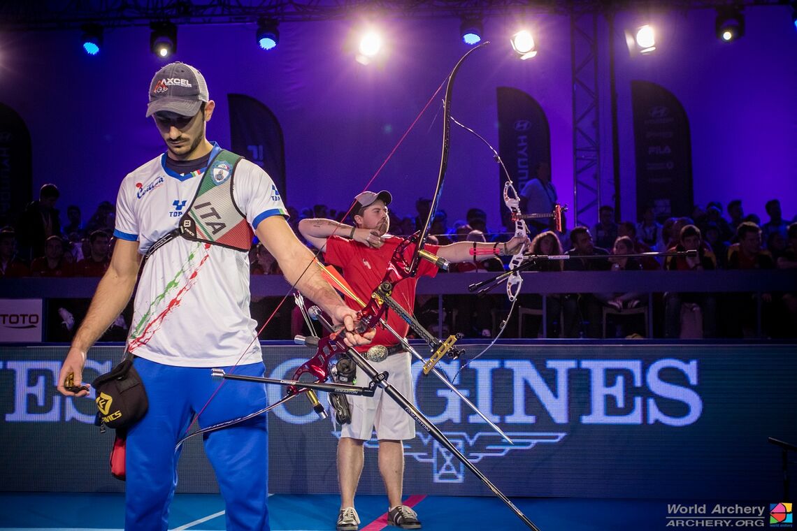 Max only took an arrow to find the middle, opposite from Brady on the line, and took the first set, then the pair split the second, leaving the score at 3-1 in the Italian archer’s favour.