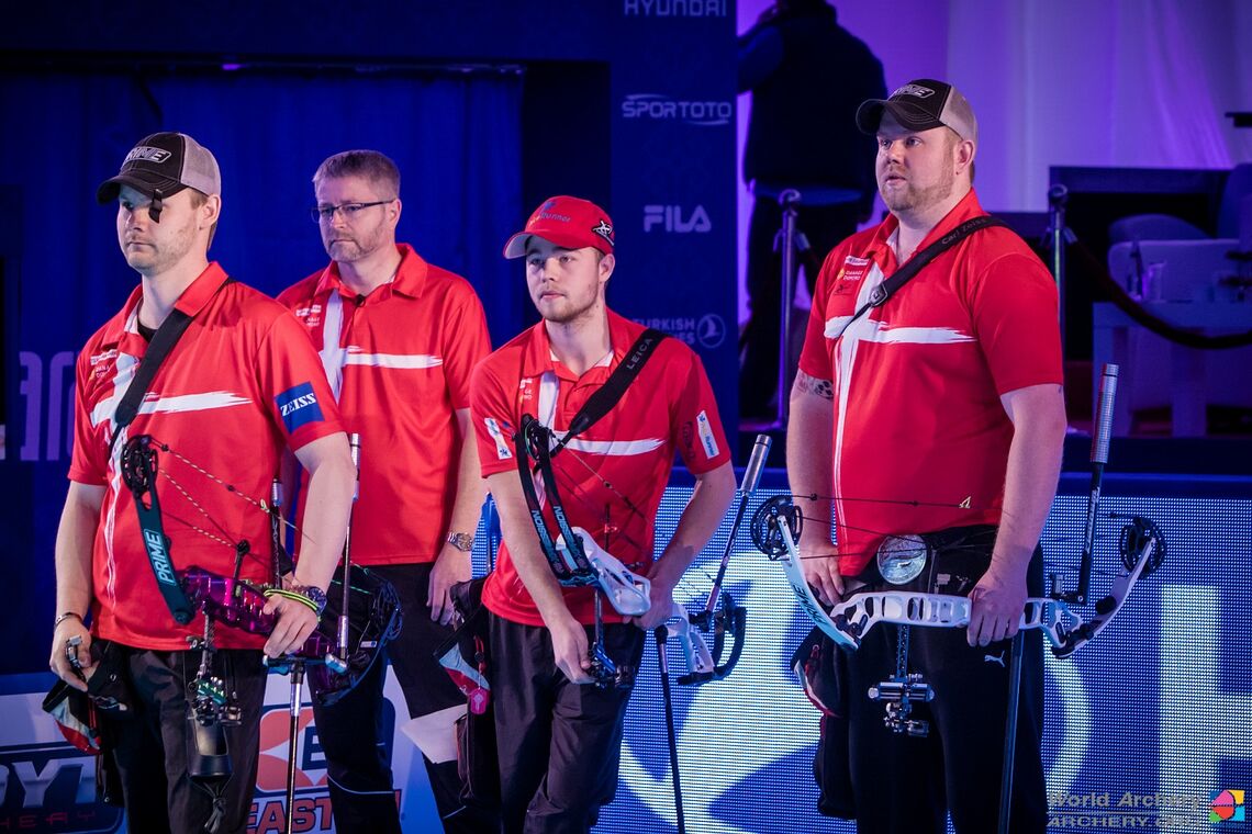 The celebrated compound men’s squad from Denmark also had a chance at gold at the World Archery Indoor Championships in Ankara. Although Patrick Laursen, Martin Damsbo and World Archery Champion Stephan Hansen performed at their usual exceptional standard for the back half of the match, an uncharacteristically loose start – 55 for their first six arrows – put them on the back foot early.