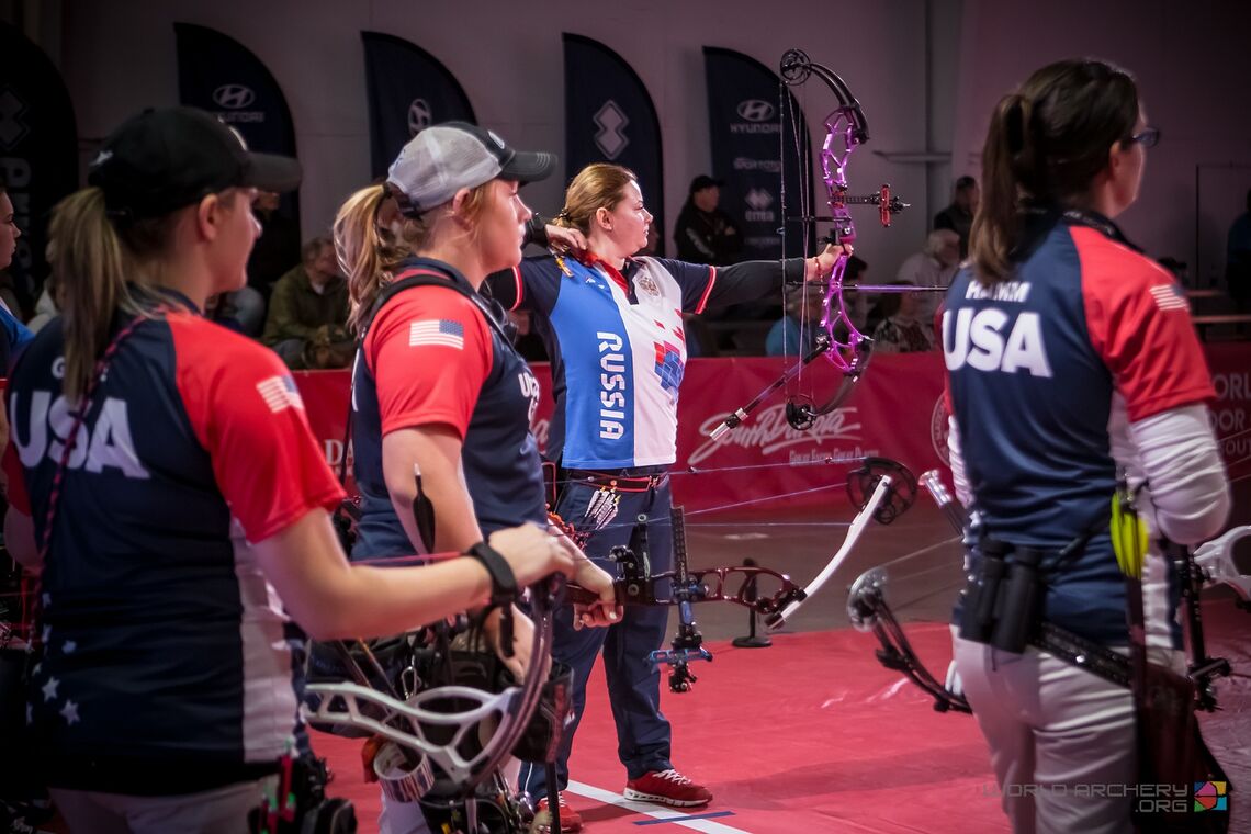 Paige Gore, Breanna Theodore and Mary Hamm beat Natalia Avdeeva, Alexandra Savenkova and Viktoria Balzhanova of Russia by a seven points, 233-226, in the compound women’s final.