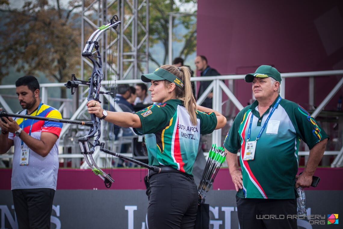 Wentzel is accompanied in the Russian capital by her father. Danelle normally trains with compound archers Patrick Roux and Seppie Cilliers.