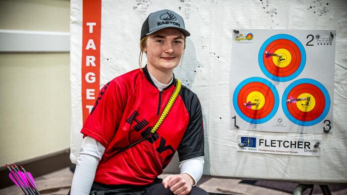 Gracen Fletcher won the championship compound female category outright by being the only woman to shoot 900 across the three days, as scoring concluded on Saturday at The Vegas Shoot.