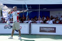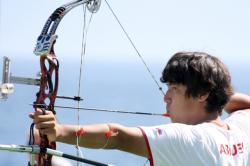 Médaille de bronze: ESPAGNE - RUSSIEL'Espagne débute avec 10-9-10 (29). La Russie ouvre le match avec trois 9 (27) et est menée de 2 pts. Rodriguez, Jerez et De La Torre marquent 10-9-9 (57). Abiduev, Chepik et Volkov réduisent le score avec 9-10-10 (56). Ils tirent maintenant en premier et marquent 8-10-10 (84). L'équipe espagnole prend une avance de 3 pts grâce à trois flèches parfaites (10-10-10/87). La Russie tire 8-10-9 (111). Rodriguez et Jerez font tous deux 9 et De La Torre lâche un 10 quelques secondes avant la fin du temps réglementaire! Ils augmentent encore leur avance (115). Les Russes poursuivent avec une bonne volée (9-10-10/140) et remontent quelque peu après que leurs adversaires aient tiré trois 9 (142). Ils totalisent ensuite 168 pts avec 9-9-10. Retournement de situation: les Espagnols perdent la tête après que Jerez ne manque carrément la cible (10-M-9/161). Mais ils ne se laissent pas aller à la déception et marquent 9-10-10 (190). Cependant, leurs adversaires russes font encore mieux avec trois 10 (198). L'équipe d'Espagne termine avec 10-9-9 (218). La médaille de bronze revient aux Russes qui remportent le match avec 225 pts (8-9-10).
