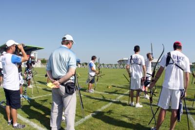 Les archers français ont pris la tête après la première volée avec 2 pts d'avance (54-52) et ont gardé leur avantage jusqu'à la deuxième volée avec 108-106. La France a encore pu augmenter leur avantage après que l'Italie ait tiré un 7 dans la troisième volée (165-160). La France a donc pu facilement gagner le match sans laisser de chance à l'Italie de revenir. Score final : 215-213.