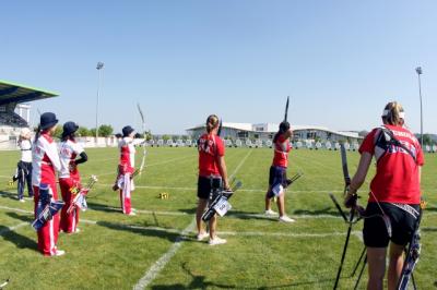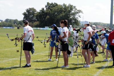 Demi-finale : Russie - GrèceLa Russie menait dans la première volée avec 53-52. Dans la deuxième volée, une des flèches des Russes a touché le 6 et a permis aux Grècques d'égaliser le match à 106 pts. Les Grècques en ont profité et n'ont pas laissé passer leur chance en égalisant à nouveau la troisième volée à 160 pts. Les Russes ont tiré 10-9-9-9-8-9 dans leur dernière volée et les Grècques en ont profité avec leur 8-10-10-10-9-9 pour remporter le match ! Score final : 216-214 pour la Grèce !