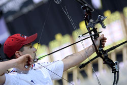 Dominique GENET (FRA) photo de droite – tirera pour le bronze dimanche J’ai laissé une petite ouverture à Chance et il ne l’a pas raté puisqu’il a marqué 120 points! Bien sûr, je regrette ces deux mauvaises flèches, mais dans l’ensemble, je suis content de mon tir cette semaine. Plus tu avances dans le tableau et plus il y a de la pression. Les matchs deviennent plus difficiles. Il y a encore beaucoup à faire ce week-end. On va essayer de prendre les Américains par équipe. On les connaît puisqu’on les a joués en finale en 2007. Et j’aurais aussi mon match pour le bronze.