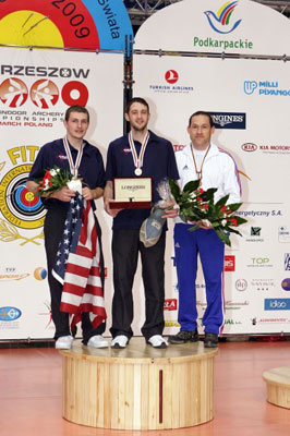 Poulies Hommes A égalité avec TOSCO (ITA), 88 partout, après neuf flèches, GENET (FRA) parvenait finalement à remporter le bronze sur la plus courte des marges, 117-116. Le titre mondial en poulies hommes serait sans aucun doute Américain. BROADWATER et BEAUBOUEF (USA) débutèrent leur match avec tous deux une superbe première volée de 30 points. Tête de série no 5, BEAUBOUEF poursuivait sur sa lancée et prenait 1 point d’avance à la mi-temps, 60-59. Son avantage passait à 3 points avant les trois dernières flèches du match, 90-87. Avec un score de 120 points, BEAUBOUEF égalisait le record du monde établi par son compatriote Dee WILDE en 1995 et remportait l'or mondial! Poulies Hommes Dans leur finale pour la médaille de bronze, HOLDERNESS (GBR) et ANSCHUTZ (USA) étaient tellement proches l’une de l’autre qu’il leur fallut trois flèches de barrage pour décider de la gagnante! A égalité 117-117 après 12 flèches, toutes deux tiraient deux fois 10 dans le tie-break. L’Américaine était plus prompte à supporter la pression, et avec un dernier 10, elle assurait un podium 100% américain. Le match pour l’or en poulies femmes était 100% américain entre HAMM et LARSON. Plus expérimentée, HAMM prenait le meilleur départ avec un 30 parfait pour mener d’un point après trois flèches. Un autre triple 10 de sa coéquipière, et LARSON se retrouvait menée de 3 points (57-60). HAMM, enceinte de son deuxième enfant, se montrait trop forte avec trois autres 10 dans la troisième volée pour porter son avantage à 5 points (90-85). En remportant ce match avec 120 points (égalisant en passant son propre record du monde), HAMM ajoutait ainsi un nouveau titre mondial à sa collection! Classique Juniors Hommes Dans le match pour le bronze, la tête passait d’un archer à l’autre. RISINGGARD (NOR) menait 29-27 après trois flèches, mais MARCU (ROU) reprenait l’avantage 56-55 à la mi-temps. Le score passait ensuite à 83-82 en faveur du Norvégien, qui venait finalement à bout de son adversaire roumain grâce à une dernière volée de toute beauté pour remporter le bronze 113-108. Tirant pour l’or en salle, MELOTTO (ITA), champion du monde junior en plein air 2008, et DENIS (BEL) prenaient exactement le même départ avec 10-9-10. Avec un 8 à sa quatrième flèche, l’Italien offrait la tête à son adversaire belge, 57-58. Ceci semblait donner des ailes à DENIS qui poursuivait son match avec trois 10 pour porter son avance à 88-85. C’en était trop pour MELOTTO qui laissait s’échapper le titre mondial en salle face au Belge, 114-117. Classique Juniors Femmes Pour le bronze, l’Italienne FILIPPI faisait la différence dans la première volée déjà, en réussissant 29 points alors que son adversaire ukrainienne DUBAS ne faisait que 25. Malgré un retour à 3 points à la mi-temps, celle-ci ne pouvait pas refaire complètement de son mauvais départ et laissait le bronze à FILIPPI. L’archère locale KAMINSKA (POL) se retrouvait menée d’un point dans la finale pour l’or face à son adversaire russe BOMBOEVA, 27-28 après trois flèches. Mais en tirant un 8 à sa sixième flèche, cette dernière voyait la Polonaise revenir à égalité à la mi-temps, 55-55. Avec deux 10 et un 9 chacune dans la troisième volée, les deux jeunes femmes étaient toujours à égalité 84-84 avant les trois dernières flèches. Un 8 de BOMBOEVA à sa dernière flèche et les spectateurs pouvaient laisser exploser leur joie! KAMINSKA offrait le titre mondial au pays hôte sur le score de 112-110. Poulies Juniors Hommes ABERNETHY (USA) semblait sur un nuage dans ce match pour la médaille de bronze, marquant trois fois 30 dans les trois premières volées. Il menait devant FANTI (ITA) 90-86 alors qu’il ne restait plus que trois flèches à tirer. L’Américain manquait le score parfait d’un cheveu, remportant la médaille de bronze 119-116. Le nouveau détenteur du record du monde depuis un jour avec 120 points, SCHAFF (USA), prenait 1 point d’avance, 29-28, après trois flèches dans la finale pour l’or. L’Américain doublait son avantage à la mi-match, menant 58-56 devant FRIBERG (SWE). L’écart entre les deux jeunes archers ne cessait d’augmenter, SCHAFF le portant à 3 points avant la toute dernière volée, 87-84. L’Américain remportait la victoire et le titre mondial sur cette même marge, 115-112. Poulies Juniors Femmes Il n’y eut pas de réel suspens dans le match pour la médaille de bronze entre KOLAREK (CRO) et NIETO TALADRIC (ESP). L’Espagnole marquait une première volée parfaite de 30 pour prendre une avance de 3 points après trois flèches. Elle parvenait à conserver son avantage jusqu’à la toute fin de match pour devenir médaillée de bronze. L'Américaine NICELY et la Russe CHERKASHNEVA prenaient toutes les deux le même départ dans le match pour l’or et se retrouvaient à égalité, 29 points chacune. A la mi-temps, les deux jeunes filles n’avaient pas encore réussi à se départager et étaient toujours à égalité 57-57. C’est la Russe qui parvenait tout d’abord à prendre la tête avec une magnifique troisième volée de 30 points (87-87). CHERKASHNEVA doublait ensuite son avantage pour remporter le match et la médaille d’or. FITA Communication